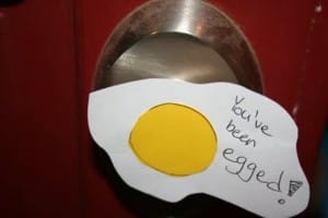 This is usually because some kids have played a prank on them the night before and thrown eggs at the side of their home. Usually, this is done to get someone back for some perceived wrongdoing.